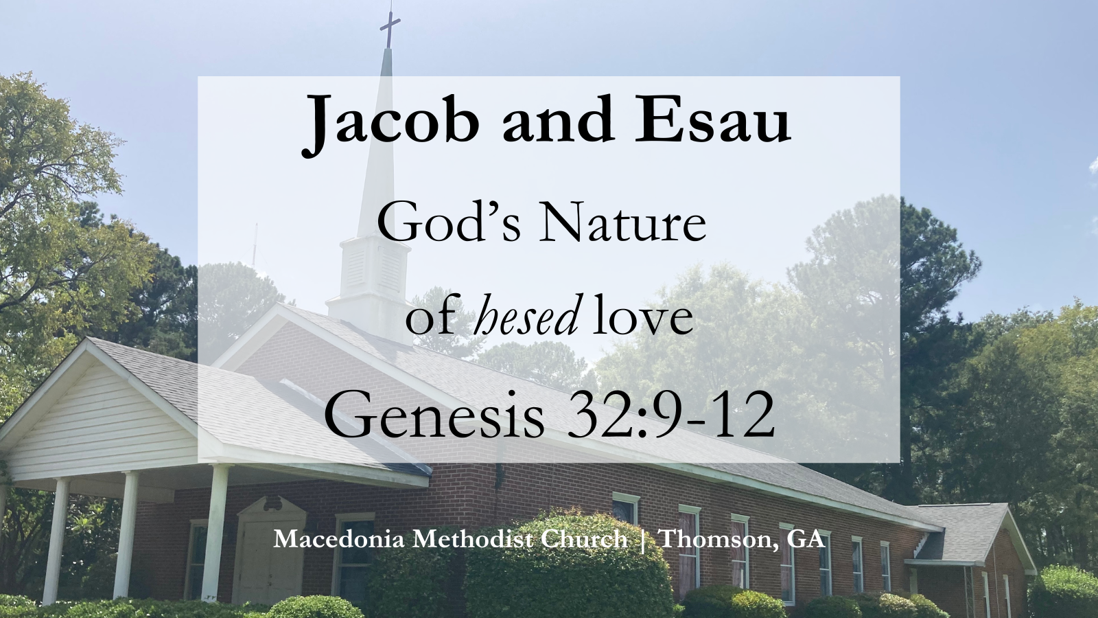 We're going to see how this all worked out for Jacob over the next two weeks. But today I just want to dwell on this prayer. We see so much change in Jacob from this prayer. Jacob serves as a model for us of how God wants us to submit our fears to him. We don't have to shove those feelings deep down, but we also don’t have to listen to the voice of fear that often tells us to do things that are sinful and lead to more brokenness. By listening to the voice of God and submitting our fears to him, we are able to receive his hesed loyal love in our own lives.
